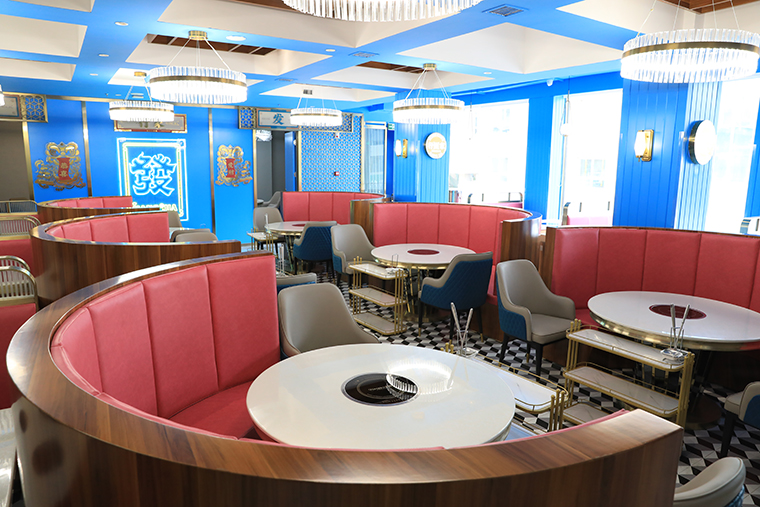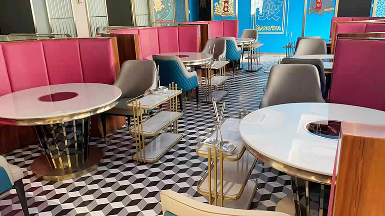 整體氛圍去掉繁雜多余的線條,多用皮質(zhì),不銹鋼材質(zhì),呈現(xiàn)精致,高品質(zhì)的用餐氛圍!空間的整體照明燈光以柔和面光為主,餐桌上方局部聚光燈照明,突出火鍋湯底的特色,金黃明亮;特色的吊燈,讓空間層次鮮明,港風(fēng)濃郁。家具以皮革為主,金屬收邊,加上小屏風(fēng)讓空間感更通透,能表達出輕奢的質(zhì)感。