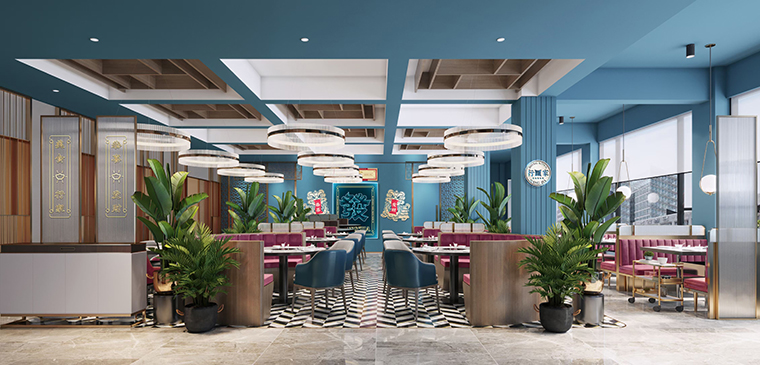 空間設(shè)計亮點:我們餐廳的整體氛圍應(yīng)該輕奢且品質(zhì)感很強;熱鬧卻不喧囂,精致有特色但容易讓人親近!整個餐廳的色彩以暖色調(diào)的不銹鋼金色為主,凸顯火鍋的用餐熱鬧,同時也讓顧客更容易親近,柜體運藍色表達出鮮明的港式風(fēng)格,同時也點明我們海鮮火鍋的特色。
