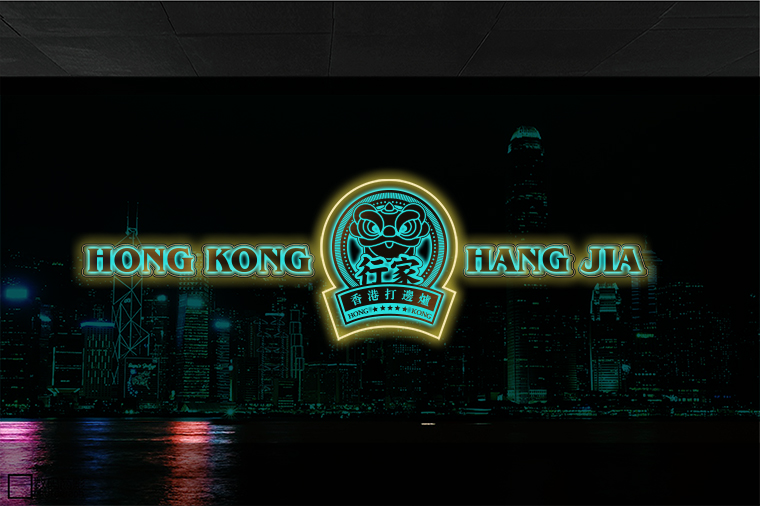 品牌記憶點:南派醒獅+香港海洋藍+玫瑰金不銹鋼+品牌元素在空間中應(yīng)用